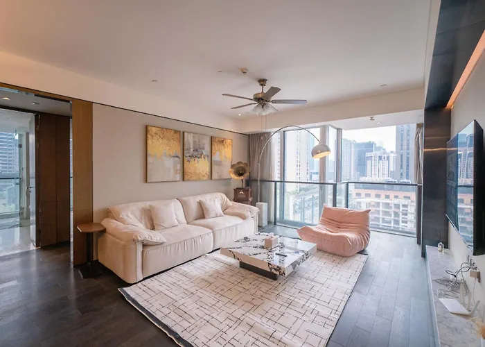 El Zhome-Luxury Three-Bedroom Suite-Near The Bund Shanghái está situado en el distrito Parramatta, a poco más de 5 minutos a pie de Huangpu Theatre. El apartamento de 180 m² ofrece vistas a la ciudad y un aparcamiento privado en las instalaciones.
